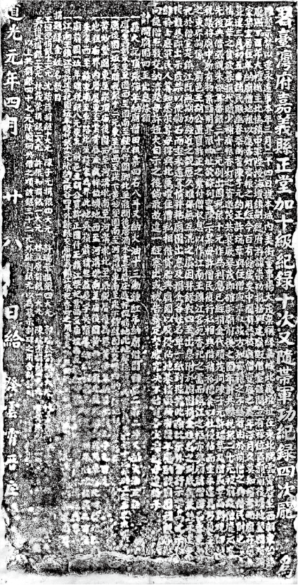 清乾隆20年(1755)3月,地方鄉紳於諸羅縣城孔廟學宮立碑告示,嚴禁他省學子冒籍應考相關記事。