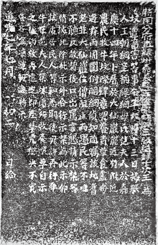 清光緒年間,噶瑪蘭廳通判抄奉勒石立碑,將清光緒2年(1876)7月20日福建巡撫丁日昌給立嚴禁聳令自盡、誣告圖賴告示碑文,摹刻於所轄之宜蘭縣境。