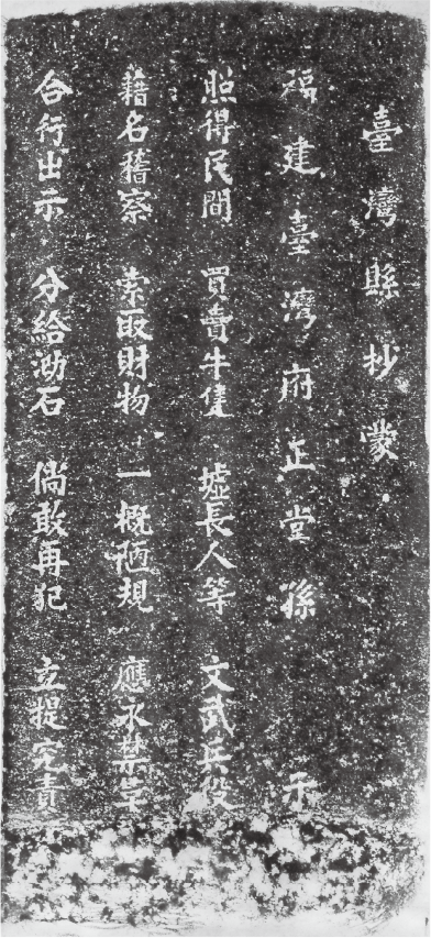 此碑於摹拓之際,碑文已殘損模糊,大抵為地方官員針對派撥公差致擾累當時所謂「熟番」所作禁令相關記事。